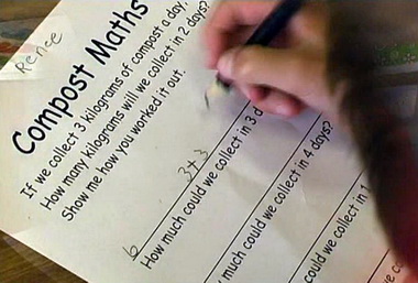 Gay Lynch, Herdsmans Cove Primary School, took hold of a school initiative to collect compost. Knowing how much was collected in one day, the children began exploring how much would be collected over longer periods of time.