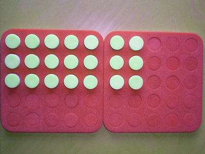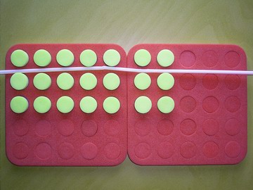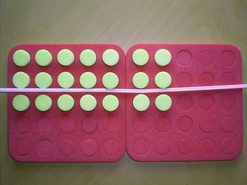 - Ask students to take any number of plugs out of the yellow/blue board and arrange them in equal rows.
