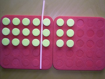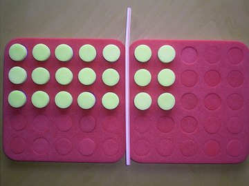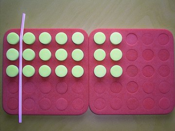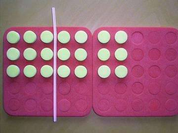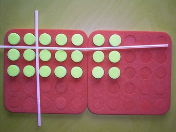 - One student hides a plug board which shows an array of equal rows with one or two straws on it. Remember the straws must be at right angles.