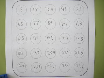 Sketch a Poly Plug Frame on the board and ask a child to tell you any starting number. Write this in the top left corner. Ask another child to tell you what the group counting number will be for today and tell children that we will be counting forward. Show that you mean going across the top row left to right, then across the next row in the same way as reading a book.