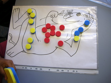 - Today your creature can only use 20 spots, but they can be any of the colours. Find 5 ways to spot your creature. Make a table of red, yellow and blue to record each picture you made.
