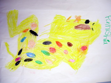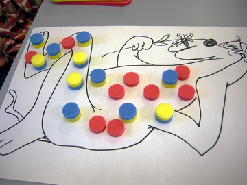 - In the book the creature can do all sorts of clever things with its spots. Show me all the clever things you can do with the spots on your creature. Make a book.