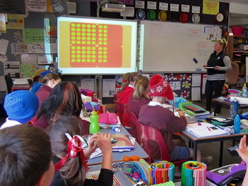 - To remind students to look at the screen, say Next, or the particular times table (eg: 4 times 3), or ding a triangle each time the slide changes.
