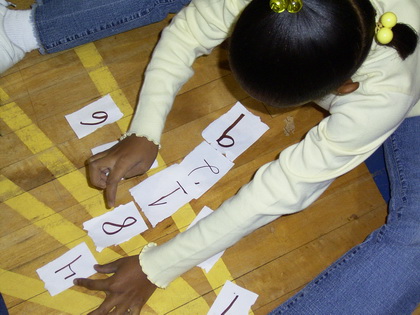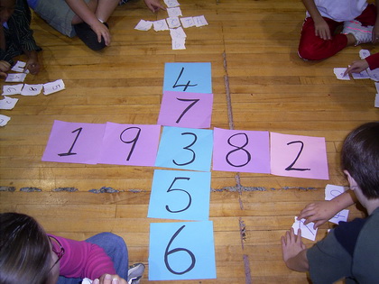 If the whole family want to join in this activity then use nine A4 pieces of paper and write big numbers like the ones on the board in the photo.