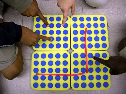 These kids made up a new challenge. They have used two straws and two edges of the chart to make a fence around a times table. Their teacher asked them what they were doing. This what they said: