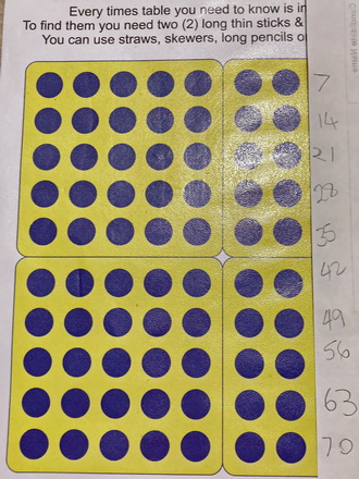 Slide the paper down one row at time and say each times table as you see it...
