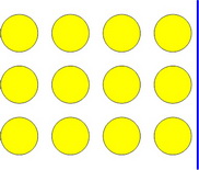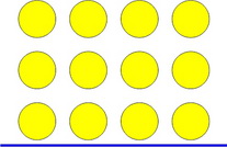Arrange your objects in three (3) rows of four (4) like the yellow plugs in the photo.