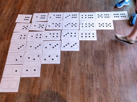 Work together to arrange your dominoes on the floor. |