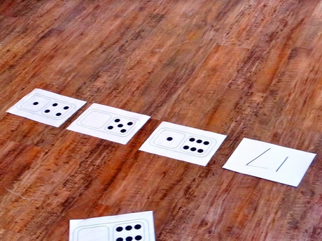![]() Now we are familiar with the dominoes we can make trails. The target is 17 with 3 dominoes. |