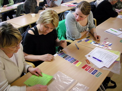 The enduring memory of these wonderful weeks is surely represented by the three teachers in this photo. It was taken at 18:00 - the workshop had begun at 15:00 after a full day at school - and these three didn't want to stop working in their non-native language to sort out the puzzle about an Australian football code they knew absolutely nothing about. Why? Because they loved the challenge of working like a mathematician.