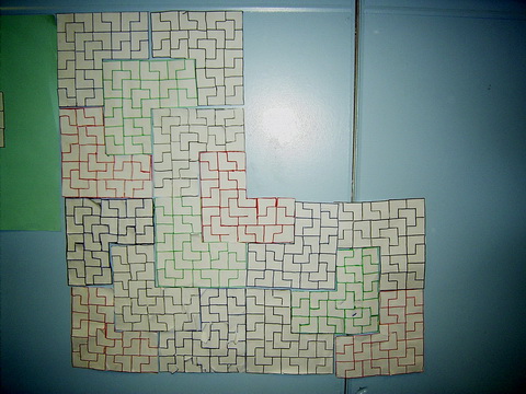This group of students were not known for their efforts in mathematics, but Task 115, Dividing Shapes, caught their imagination and led to this amazing work with 'home made' Trisquares. As the Trisquares grew so did the students understanding of number patterns, number pairs, graphing, perimeter and area. |
