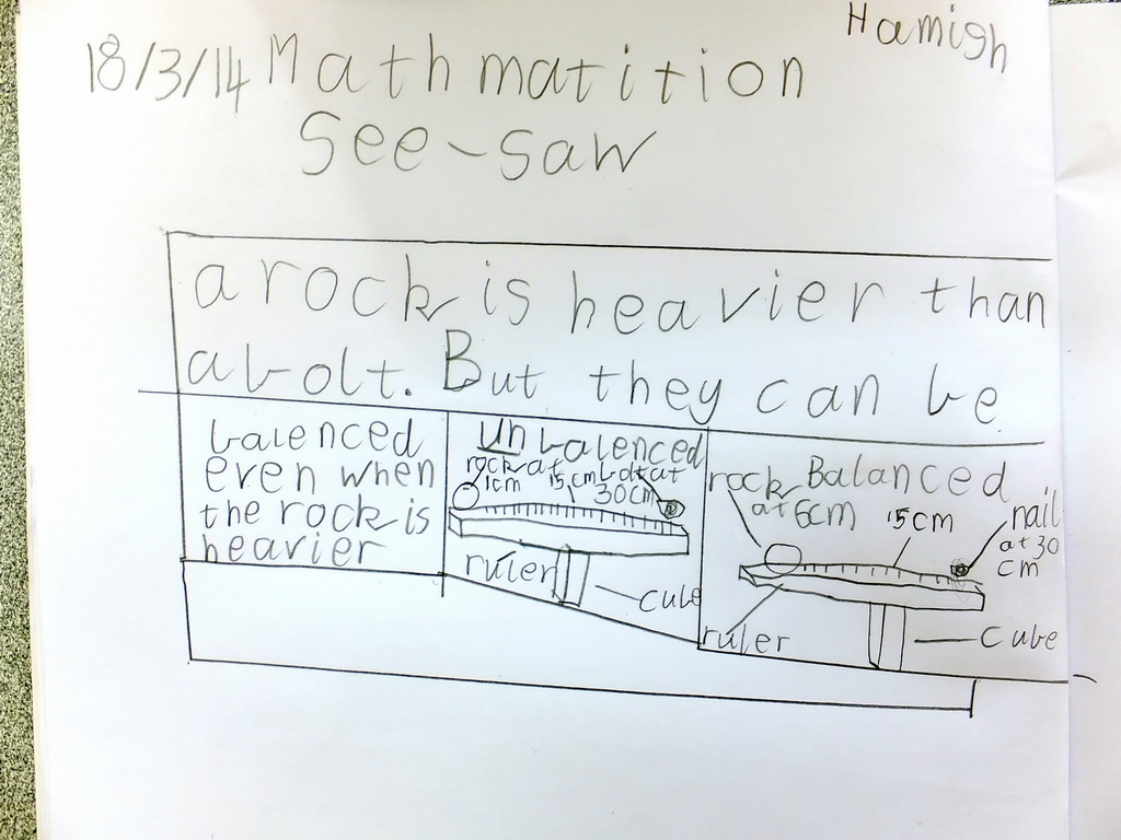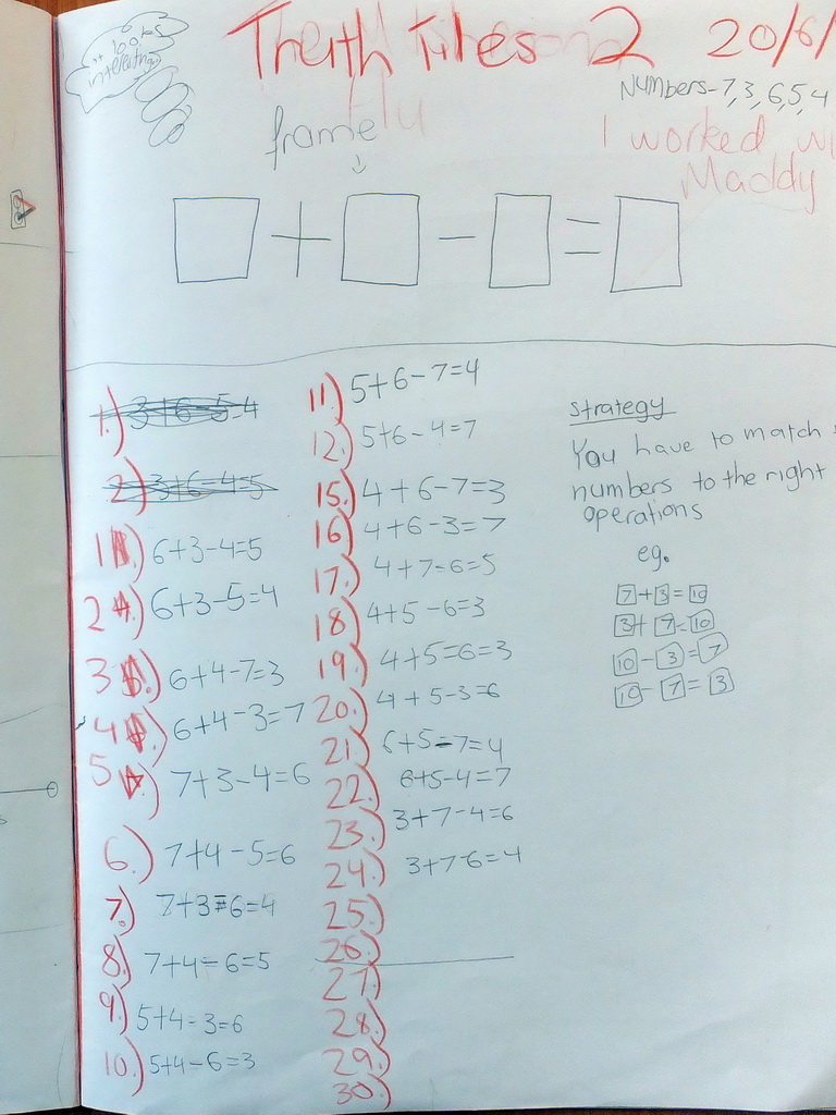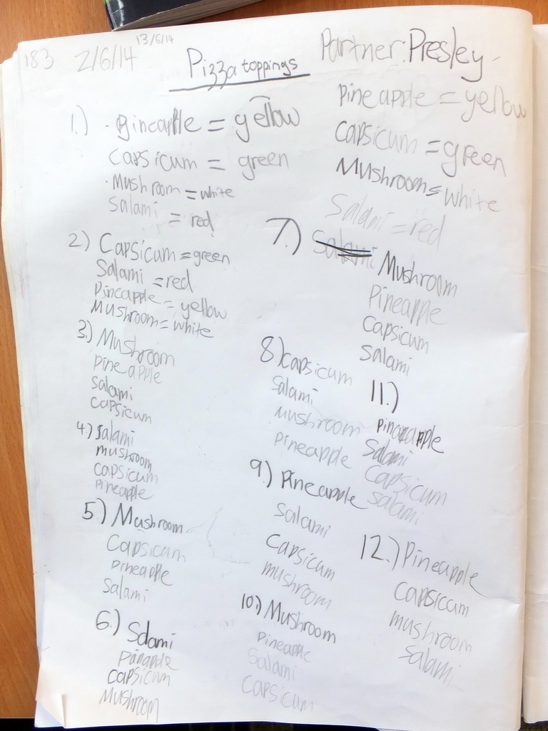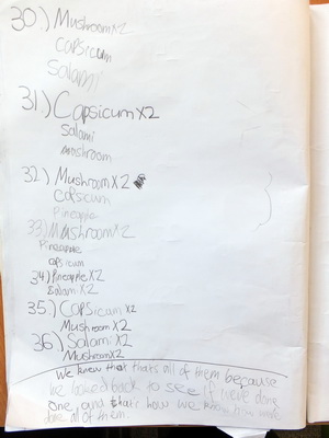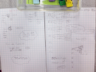 - The third set of photos comes from the first task lesson in Year 5 classes. This was part of a phase in across the school and occurred a term after Year 4. An ability to record in more detail the first time is evident in these photos, no doubt as much due to the school's literacy program as its mathematics program.