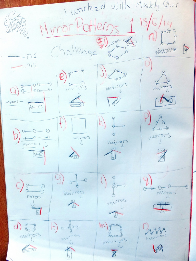 and recording where the mirror is placed for each Mirror Patterns 1 challenge.