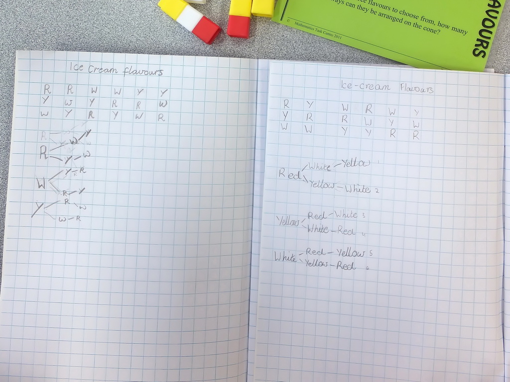 Chloe working on Task 118, Ice Cream Flavours and showing the mathematician's strategy of learning from a previous problem.