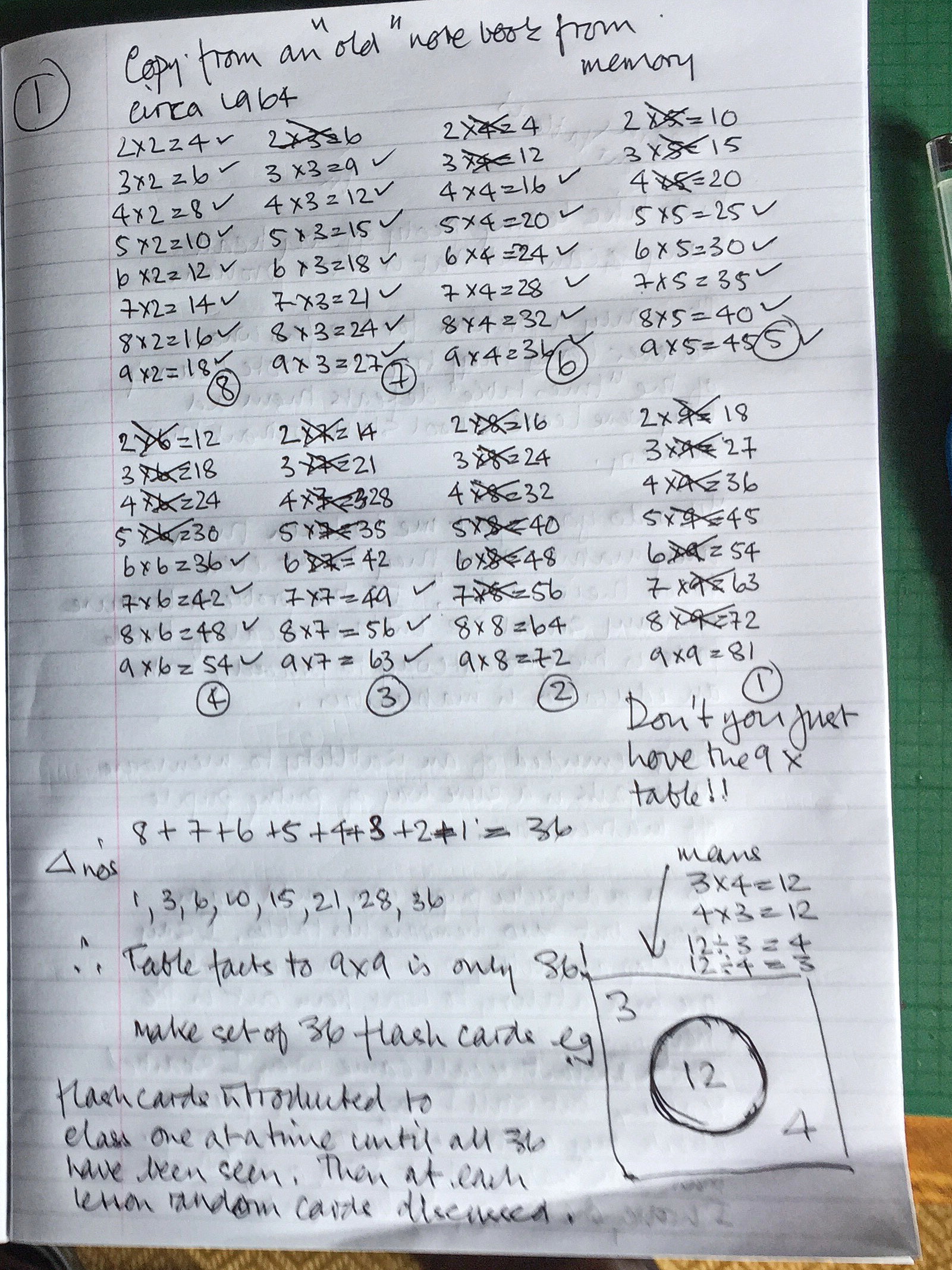 | Y9 bottom set, my first year of teaching: To prove that I could get them all to recall all table facts up to 9 x 9.