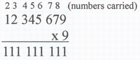 It was easy to predict what each digit would be after we had multiplied the first two or three digits and to predict what the number carried would be.