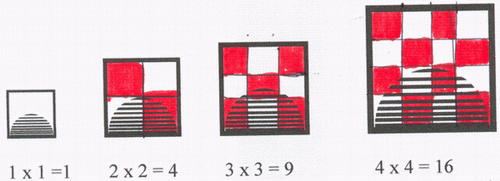 After doing this we explored whether we could make any more patterns using the number of gifts for each day. When we added the consecutive triangular numbers, we discovered that the totals were square numbers. We found a way of displaying squares using the square numbers.