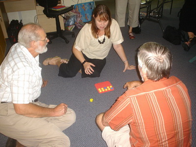 | After morning break the Year 7 students became team captains and had to choose two other people, so the class was now in 4 teams of 3. Douglas introduced Win A Flat. Here was an activity that ran itself in my multi-age class and yet had learning and reinforcement for all students.
