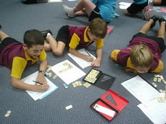 When the Millaroo students arrived, Douglas used the introduction to the Maths300 lesson Bob's Buttons to mix up the kids and make three groups. Then each teacher took a group for an investigation and after thirty minutes we rotated.