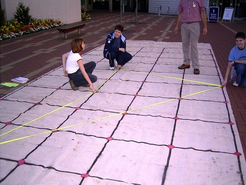Make a shape with one elastic, then explore reflecting it in various ways and show the result with a different colour elastic.