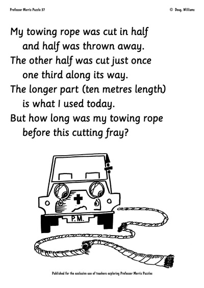 A Professor Morris Puzzle is more than the problem you see. Solving the problem is the starting point for further discussion and investigation. Notes are provided to support that process.