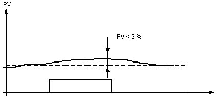 If the measurement exceeds the range (pv_inf, pv_sup), then the autotuning will be cancelled, and the regulator set to the previous operating mode. Estimating the future measurements enables the autotuning to stop before the range is exceeded (if a first model has been identified).