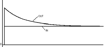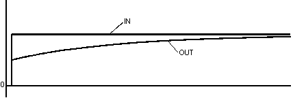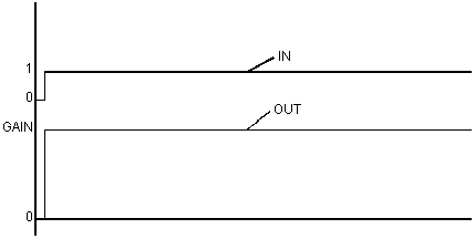 In this case the output OUT will jump to double the accumulated value in order to make the transition to the final value (GAIN * IN) with the delay time constant LAG.