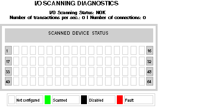 A value of NOK in the I/O Scanning Status field indicates that the local system is not scanning. In this case, any data that appears in the Scanned Device Status display is meaningless.