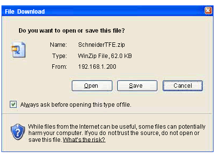 When you select Upload MIB File, the File Download dialog box appears. You are asked if you want to save the MIB file or open it: