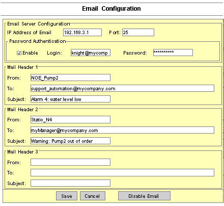 Use the module’s embedded Web page to configure the Electronic Mail Notification service. No other method is available.