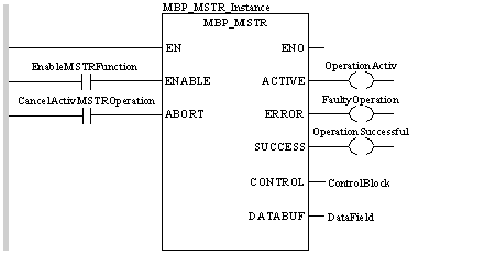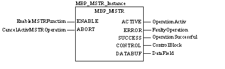 NOTE: In FBD and LD sections, this function block can be used on the program level and with derived function blocks (DFBs). When using DFBs, verify that the parameters CONTROL and DATABUF are directly connected to the I/O pins of the DFB.