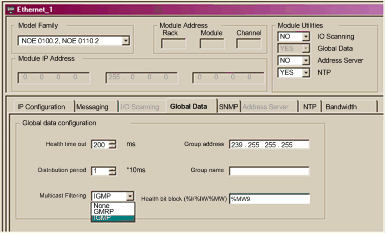 Activates an Ethernet module that supports multicast filtering. From the drop down list, select:
