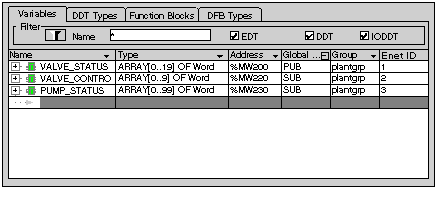 Group name for allocating the variables of the existing network description. When creating the different Ethernet networks, a logical connection is arranged here between the network and the variable declaration.