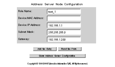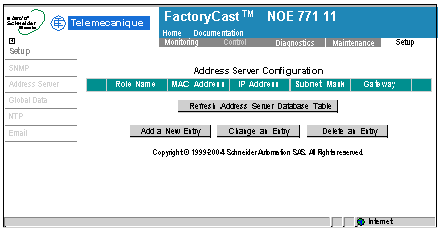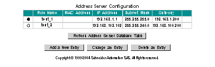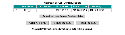 Note: You can press the Refresh Address Server Database Table button to refresh the table data at any time.