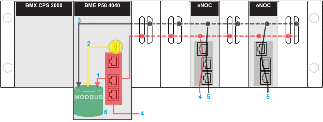 5 These requests are sent to the IP address of the BMENOC0301/11 from devices that are connected on the Ethernet port of either the BMENOC0301/11 or the CPU. (In this case, enable the Ethernet backplane port of the BMENOC0301/11.)
