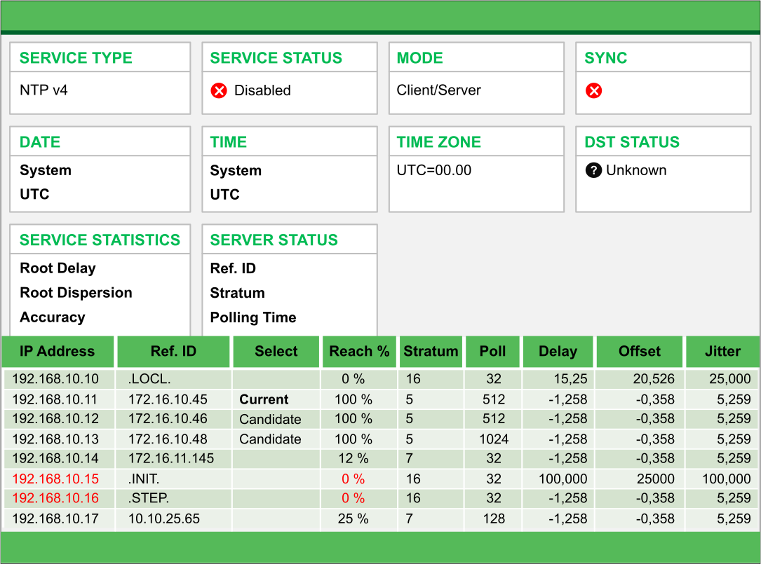 The NTP service status is unknown. |