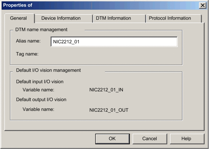 On the tab, create a unique . (Using similar devices that use the same DTM can result in duplicate module names.) In this example, type in the name : ![]() Control Expert uses the as the base for both structure and variable names. NOTE: The is the only editable