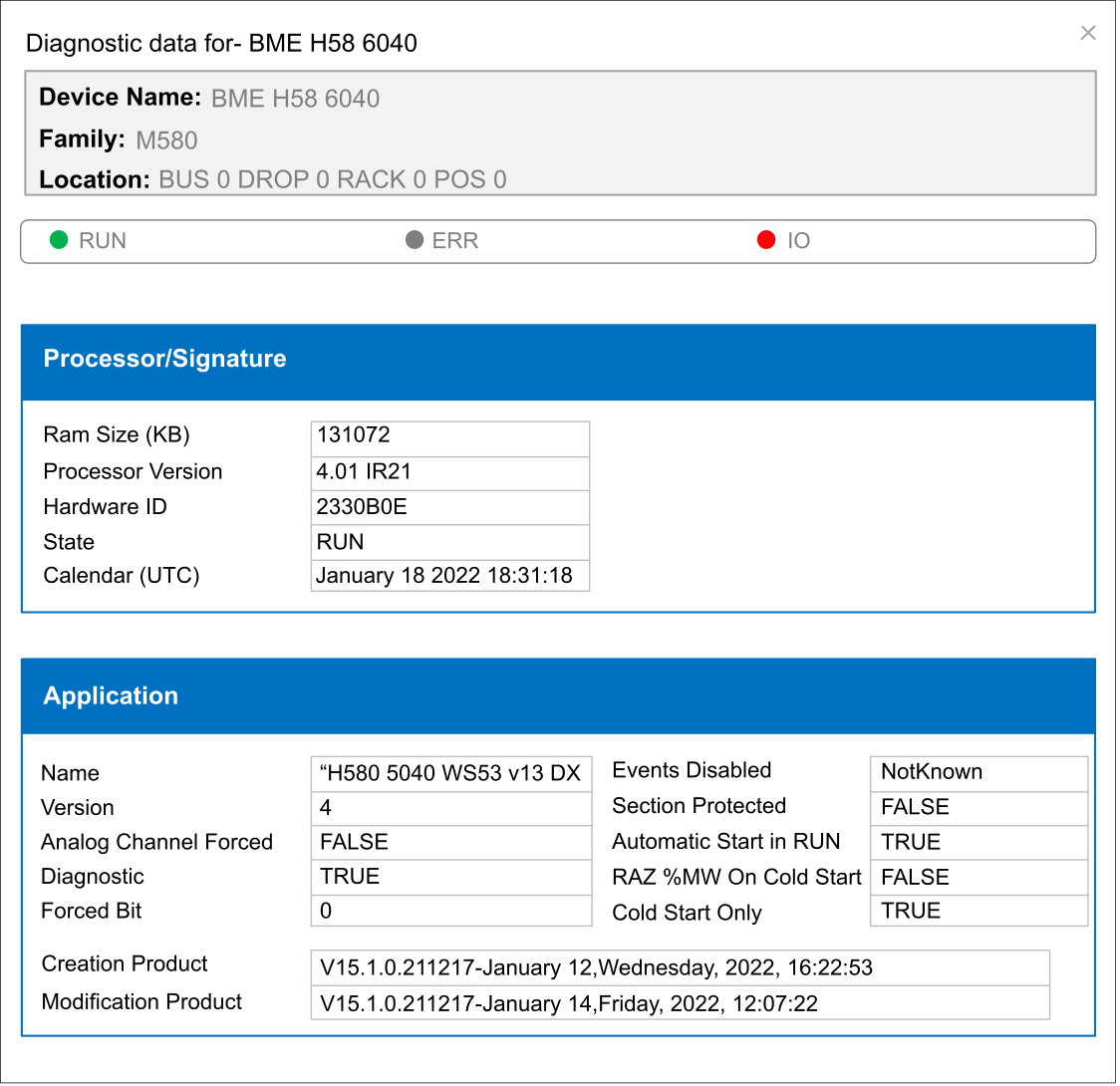 CPU state (RUN, ERR, and I/O)